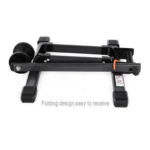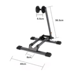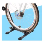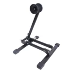 Eenvoudige achterwielstandaard, geschikt voor het stallen van vrijwel iedere fiets. De stabiele veerarm fixeert de fiets zonder het frame, de velg of spaken te beschadigen