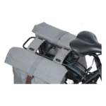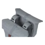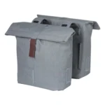 De Basil City is een modieuze dubbele fietstas met genoeg ruimte voor je boodschappen. Uitgevoerd in een mooie grijs gemêleerde kleur en geschikt voor bevestiging achterop je (elektrische) fiets.