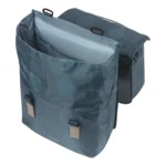 De tas is gemaakt van waterafstotend materiaal en dankzij de waterkerende vouwsluitingen blijft de inhoud van je tas droog mocht er plotseling een klein regenbuitje vallen. Je sluit de tas eenvoudig met de sterke klittenbandsluiting. Iets zwaars vervoeren? Dat is geen probleem omdat de bodem van de dubbele fietstas is verstevigd met een glas fiber strip.