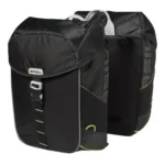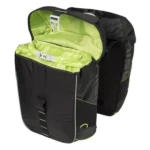De Basil Miles Double Bag is een waterdichte dubbele fietstas met een ruime inhoud van 34 liter. Boodschappen doen of die fietstrip door de Ardennen, deze dubbele fietstas maakt jouw fietsrit makkelijker en leuker. De donkergrijze/antraciete kleur en bruine details maken de tas stijlvol. Bij een flinke regenbui zorgt het waterdichte materiaal ervoor dat de inhoud van de tas droog blijft. Door het Basil Universal Bridge System past de tas op alle bagagedragers (ook e-bike) en kan die gecombineerd worden met bevestigingssystemen als Racktime, Carrymore en i-Rack. De reflectiedetails helpen je om beter zichtbaar te zijn in het donker. Ook is er gedacht aan een bevestigingsmogelijkheid voor ledverlichting. De dubbele fietstas sluit met behulp van een rolsluiting en kliksluiting en heeft een stevige binnenvoering. Deze Basil Miles Double Bag is onderdeel van de Basil Miles collectie. Ben je op zoek naar een enkele fietstas van deze lijn? Kijk dan eens hier.