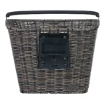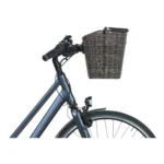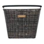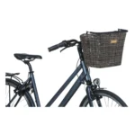 De kunststof rotan fietsmand is weersbestendig.