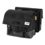 Urban Proof 55L dubbele fietstas is een sterke tas met een verstevigde rug en bodem, gemaakt van gerecycled PET materiaal (RPET). De tas heeft twee ruime opbergvakken met een totale inhoud van 55 liter. Hij is zo gemaakt dat je snel en eenvoudig de tas kan openen en sluiten met de chromen haken. De tas is gemaakt van waterafstotend RPET en heeft aan de binnenkant een waterbestendige voering als extra bescherming voor jouw spullen.