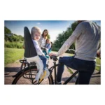 Bovendien zet je dit fietsstoeltje in een handomdraai achterop. Je draait de klem in en uit, en met de ontgrendeling aan de achterzijde haal je het zitje er zo af. Daar komt geen schroevendraaier aan te pas.