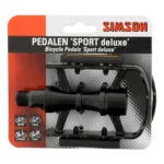 De Simson Pedalen Sport de luxe zijn met name geschikt voor mountainbikes en ATB fietsen maar ook voor de E-bike en tourfiets. De stevige en luxe aluminium pedalen, vervaardigd uit één stuk aluminium, hebben een grof profiel voor optimale grip. De pedalen hebben een luxe uitvoering in duo color zwart-zilver en zijn voorzien van reflectoren.