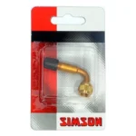 Deze Simson haakse pompnippel bied de oplossing voor moeilijk bereikbare autoventielen van bijvoorbeeld een kinderwagenband, een skelterband, een rolstoel of een kruiwagenband. Draai de Simson pompnippel op het autoventiel waarna de band opgepompt kan worden met een pomp die geschikt is voor autobanden. Verwijder na het oppompen de pompnippel van het ventiel.