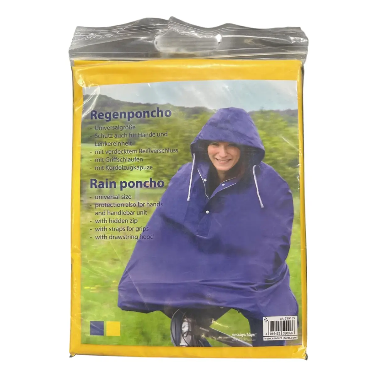 Deze universele regenponcho beschermt bovenlichaam en benen tegen regen. Ideaal voor op de fiets of tijdens wandelingen.