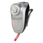 Simson Batterij Voorvork Koplamp met witte LED en aan/uit-knop. De koplamp heeft een lichtopbrengst van 35 Lux! De koplamp is geschikt voor voorvork montage en is eenvoudig te bevestigen op het kroonstuk van de voorvork. Inclusief lamphaak en batterijen: 2 x AAA.