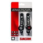 De Simson Batterij LED set “Bullet” heeft een zeer stevig, lichtgewicht aluminium behuizing. De universele rubberen bevestigingsband zorgt voor een eenvoudig gebruik op bijvoorbeeld de zadelpen of het stuur. De lampjes hebben een aan, uit en knipper functie. De LED lampjes realiseren een lichtopbrengst van 2,5 LUX bij het voorlicht, en 1,5 LUX bij het achterlicht. De drukknop is eenvoudig bedienbaar, zelfs met handschoenen of natte handen. Kortom, de ideale lampjes set voor de sportieve fietser! De rubberen bevestigingsband is bruikbaar tot 35mm breedte. Inclusief 4 x CR2032 batterijen.