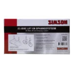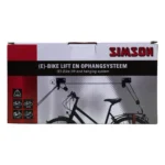 Met de extra sterke Simson (E)-bike lift en ophangsysteem kan je eenvoudig thuis een fietsreparatie uitvoeren of een (E)-bike opbergen. De fiets kan op verschillende hoogtes worden gehangen door middel van katrollen. De TÜV gekeurde Simson (E)-bike lift en ophangsysteem kan maximaal 54 kilo dragen en op 3 meter hoog worden gehangen. Let hierbij op dat het plafond waar de lift aan gemonteerd wordt dit ook kan dragen. Bij de Simson (E)-bike lift en ophangsysteem worden ook handige draagbanden meegeleverd. Hiermee kan bijvoorbeeld een dakkoffer of surfplank snel en makkelijk worden opgeborgen.