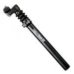 Telescopische verende zadelpen met 98 mm montagehoogte, 1-schroef klem, 30 mm naar achteren versprongen en instelbare voorspanning. Met stalen veerophanging voor een berijdergewicht van 70 – 120 kg. Geschikt voor 7 mm zadelrail.