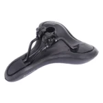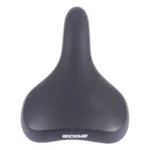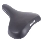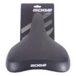 Het zwarte Edge Towny zadel is een unisex zadel geschikt voor tour- en stadsfietsen. De 60 graden zithoek zorgt voor een semi-sportieve houding op de fiets. Met memory foam vulling, een soepel materiaal is dat zich perfect aansluit aan het lichaam en hierdoor minder druk op de drukpunten van het lichaam en het gewicht wordt beter verdeeld. Afmeting zitvlak 26×21 cm (LxB), gewicht 480 gram. Het zadel wordt geleverd met zadelstrop.