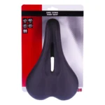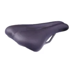 rekking fietser. Het Simson zadel Hybrid is voorzien van een centrale opening wat zorgt voor een drukverlaging rond de schaamstreek. De soft foam vulling en de gelpads op het zitvlak zorgen voor een comfortabele zit op dit sportieve zadel. Het zadel is zeer geschikt voor fietsers die kinderen achterop vervoeren, omdat er geen onderdelen (zoals veren) aan het zadel zitten waar kinderhanden zich aan kunnen bezeren. Het Simson zadel Hybrid heeft een lengte van 268mm, een breedte van 174mm, weegt 453 gram en is zwart van kleur.